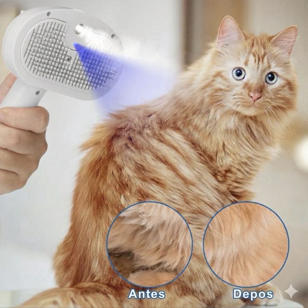 Enquanto você remove nós e pelos soltos, a tecnologia UVC atua diretamente na pelagem, ajudando a eliminar bactérias, reduzir fungos e combater pulgas no estágio inicial, evitando infestações silenciosas que causam coceira, irritação e sofrimento diário.